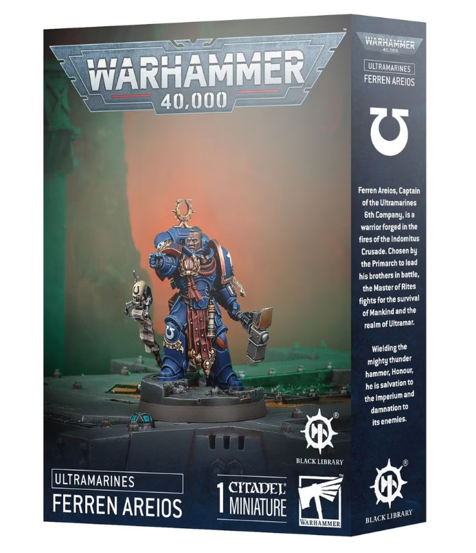 Ferren Areios, Captain of the Ultramarines 6th Company, is a warrior forged in the fires of the Indomitus Crusade. Chosen by the Primarch to lead his brothers in battle, the Master of Rites fights for the survival of Humanity and the realm of Ultramar. Wielding the mighty thunder hammer, Honour, he is salvation to the Imperium and damnation to its enemies.