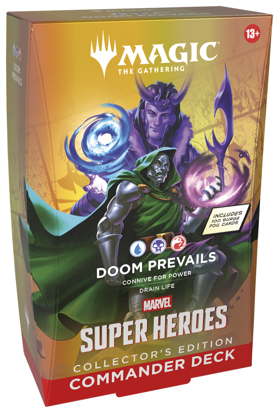 Commander decks are ready to play right out of the box and contain everything you need to play Magic’s most popular multiplayer format. Magic: The Gathering | Marvel Super Heroes Commander Decks Collector’s Edition feature four different Commander deck versions and each includes 100 surge foil cards.