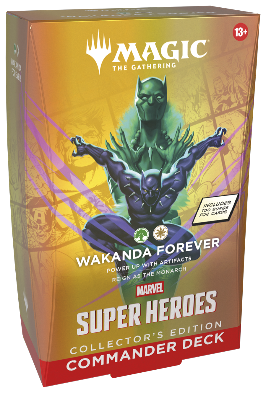 Commander decks are ready to play right out of the box and contain everything you need to play Magic’s most popular multiplayer format. Magic: The Gathering | Marvel Super Heroes Commander Decks Collector’s Edition feature four different Commander deck versions and each includes 100 surge foil cards.
